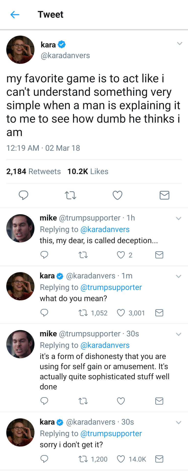 that she played ignorant, was treated accordingly, and that it was silly that she took offense over being deceptive about her understanding